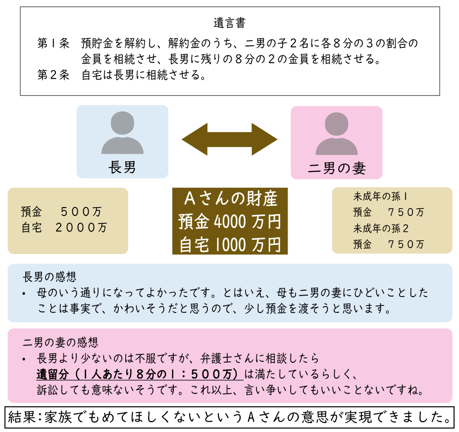 ※ ただし、Aさんが重い認知症で遺言を作る能力がなかった場合などは、遺言が無効であると不服をいうことができます。