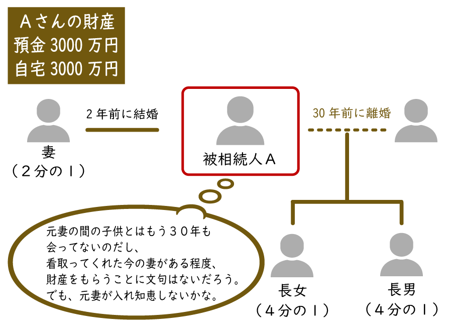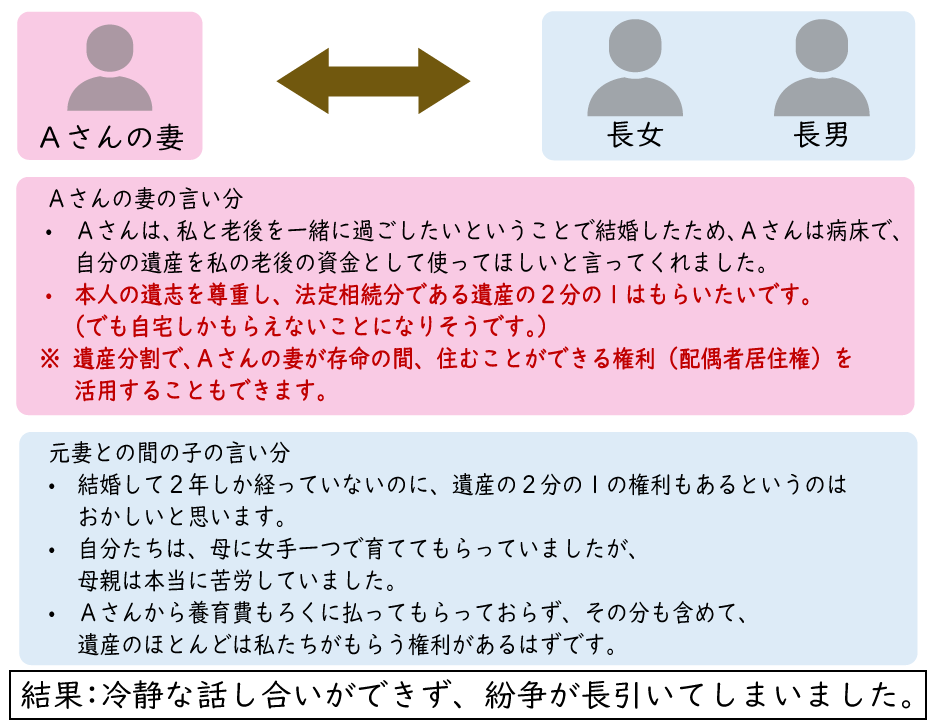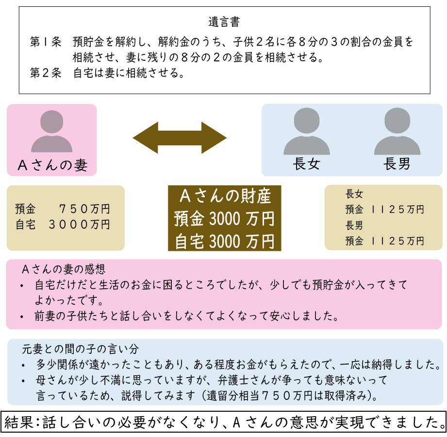 遺言が効果的だった事例③先妻との間の子供と後妻がいる場合をご参照ください。