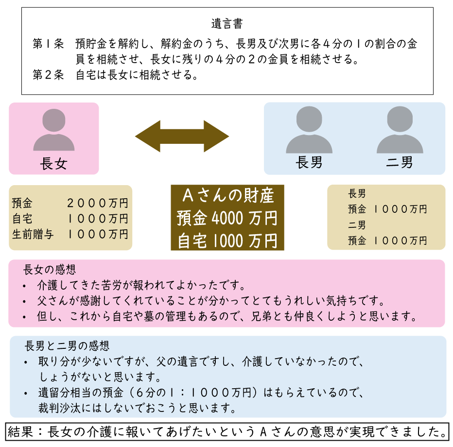 (相続人のうち自分が大変世話になった長女により多くの財産を相続させたい場合)